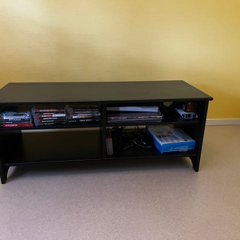Hvit TV-benk selges. TV-benken har noen merker etter teip som ble revet av. Selges svært billig grunnet dette. Utover dette er benken i god stand.