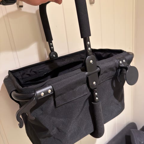 Emmaljunga handlekurv til barnevogn i svart tekstil med netting og solid ramme. Kurven festes til vognen og gir ekstra oppbevaringsplass til utstyr og handleposer. Passer til utvalgte Emmaljunga-barnevogner, avhengig av modell og årsmodell.