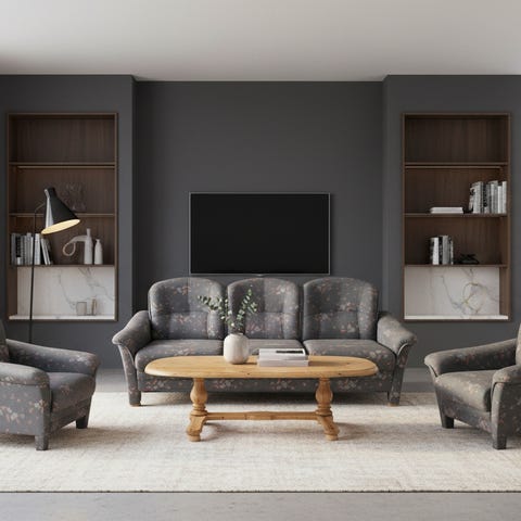 Klassisk salong inkl 3 bord i eik og teppe