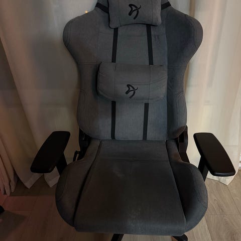 Den ble kjøpt i oktober 2024, men har ingen synlige merker av bruk. Stolen knirker heller ikke og er nesten like god som ny.