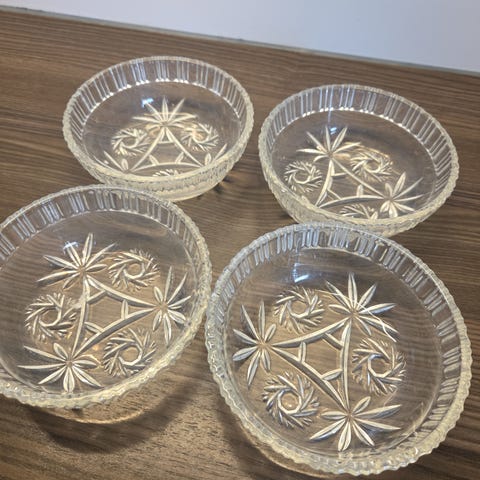 4 stk vintage drikke brikker/konfekt skåler i glass