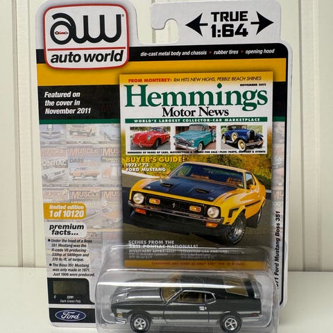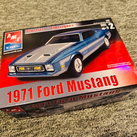 Modellen er en detaljert miniatyr av 1972 Ford Mustang Mach 1 i rød farge. Den leveres i original blisterpakning fra Auto World sin Vintage Muscle-serie. Bilen er støpt i metall med plastdeler og rullende hjul.
