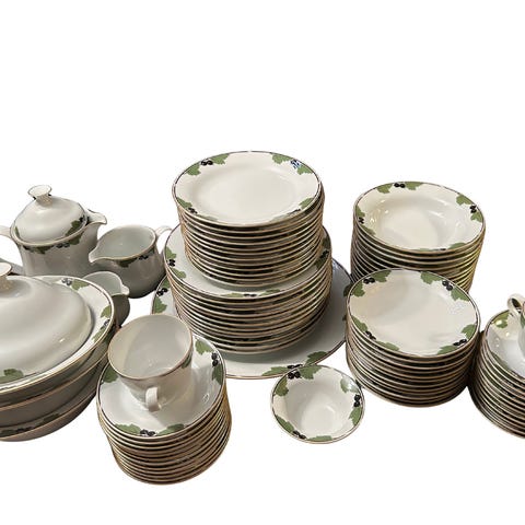 Dette er et komplett og pent servise til 12 personer – med mange ekstra serveringsdeler. Serviset fremstår pent og godt ivaretatt uten skader. Selges samlet.
