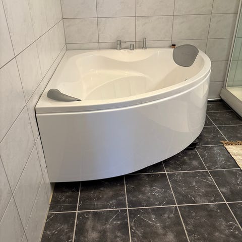 Det er også et lite betjeningspanel/skjerm ved karkanten for styring av funksjoner. Egnet for innbygging på bad med flislagte vegger og gulv. Passer til baderom der man ønsker et badekar med boble- og massasjefunksjon.