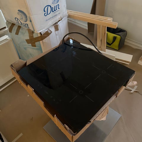 Årsaken til salget er at glasstoppen har fått en sprekk. Har byttet til en helt tilsvarende platetopp. Selger platetoppen komplett med alle deler.