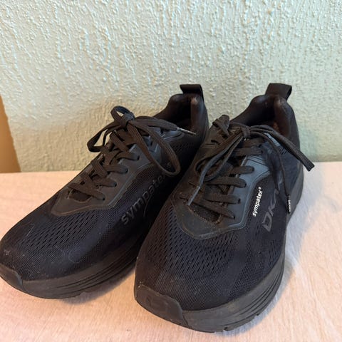Okaki lightweight i størrelse 37 med ekstra vidde. Kjøpt hos ortoped. Dessverre ble sålene på skoene for stive for mine problemføtter, så de er kun brukt èn gang.