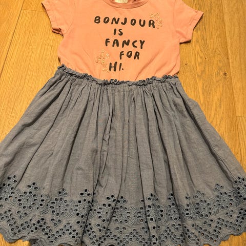 Søt kjole fra Desigual. Den har et par små hull, se bilder. Har lik kjole i str 110/116 hvis man ønsker søskenmatch 😊