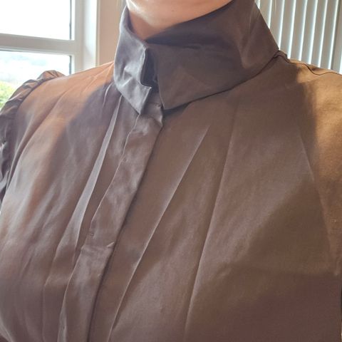 Kjempetøff, kan dresses opp og ned, med sjerf/knytebånd i halsen.