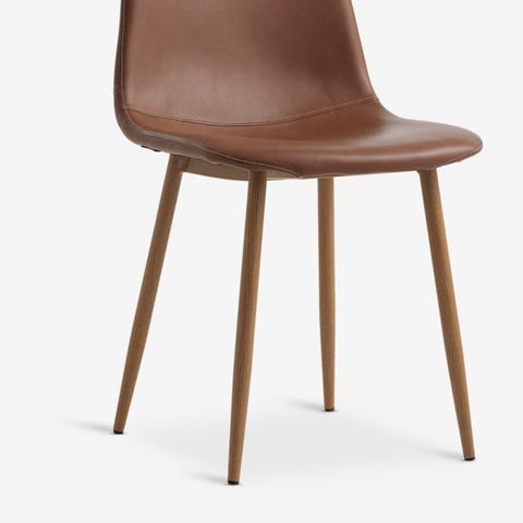 Selger 4 stk JYSK JONSTRUP spisestoler i svart imitert skinn med eikefargede ben. Pent brukt, hele og stabile. Komfortable og stilrene stoler som passer de fleste spisebord.