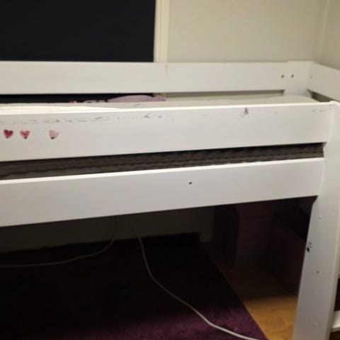 IKEA loftseng med skrivepult og oppbevaring hvit/blå