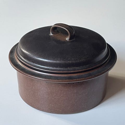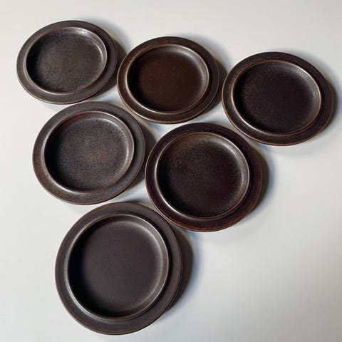 Selger 6 stk. sjeldne skåler med hanker fra Arabia, modell Ruska. Ruska ble designet av Ulla Procopé på 60-tallet. Finsk design. Retro. Skålene er 14 cm i diameter (16 cm inkludert hanker) og 5,5 cm høye. Perfekt stand. Knapt spor av bruk. 350 kr per stk. eller 2000 kr samlet. Kan hentes (Grünerløkka eller Sentrum) eller sendes.