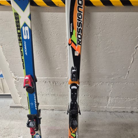 Alpinski fra Salomon og Nordica med monterte bindinger. Barn/junior. Lenge 120.