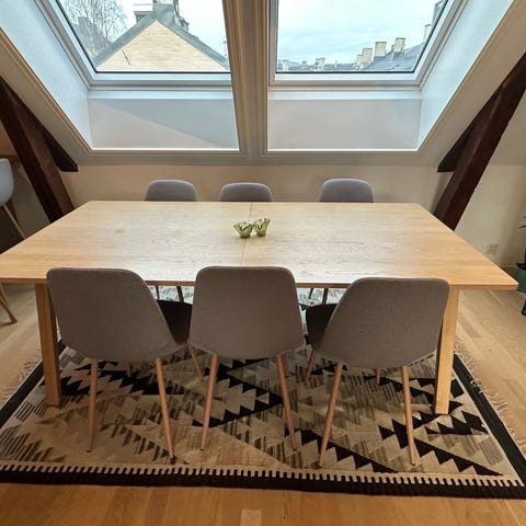 Selges eventuelt med 6 Tossberg stoler. Pris med 6 stoler 3500,-. Hentes før 18.2.