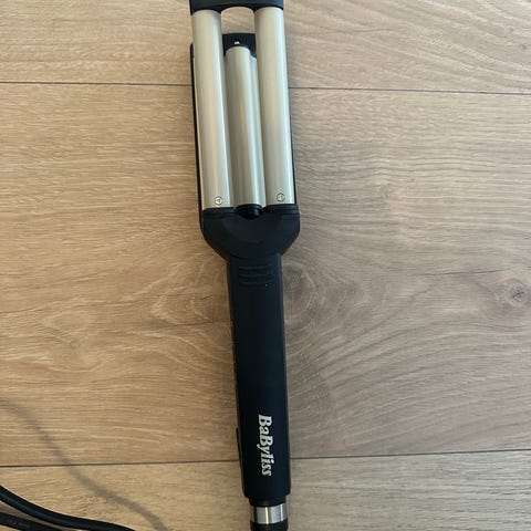 BaByliss krølltang/bølgetang i gul farge med metalliske varmeplater. Enheten har ledning med vanlig støpsel til bruk i stikkontakt. Egnet for styling og forming av bølger og krøller i håret. Passer til generell bruk hjemme til hårstyling for ulike hårtyper. Liten størrelse til reise, lager fine bølger men blir ikke brukt lenger. Fungerer. Kommer uten emballasje.
