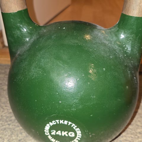 Selger en 32 kg kettlebell i konkurransestørrelse. Disse kulene fra Compact kettlebells er altså like store uavhengig av tyngde. Har en annen annonse med en kettlebell på 24 kg også.