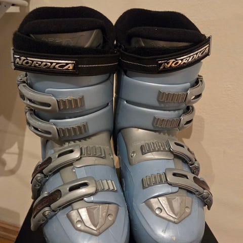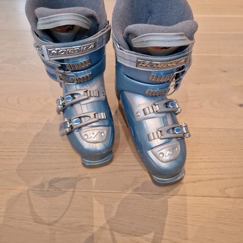 Nordica Olympia Speed alpinstøvler for dame i lyseblå farge. Støvlene har fire justerbare spenner i metall og powerstrap øverst for bedre tilpasning rundt leggen. Modellen har justerbar hardhet bak på skaftet. Innerstøvlene er polstret for komfort og støtte. Passer til vanlig alpinbruk i bakke med standard alpinbindinger.