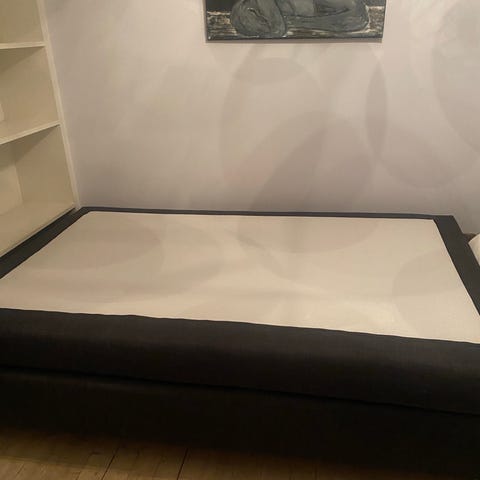 Senga befinner seg i rekkehus i 3. etasje og må bæres ned. Vi stiller med én bærer, men man må være to.