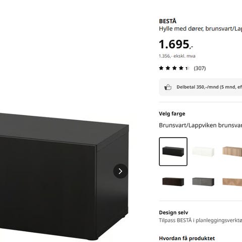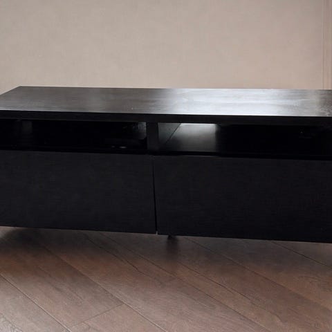 Pent brukt BESTÅ tv-benk fra IKEA. Den har tre dører.