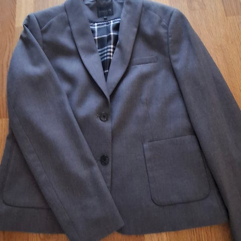Rydder i skap og selger meget pent lite brukt Stockholm bouclejakke med gullfargede knapper og fløyelskant inni jakken.