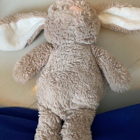 3 Kosebamse /sovepose til barn. Disse er fra Kid. Det er to hvite kaniner og en grå elefant.