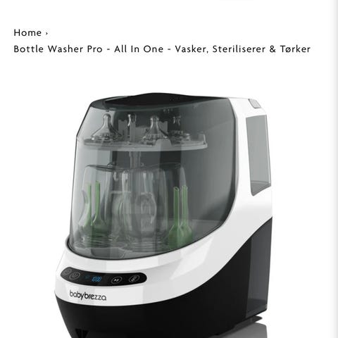 Baby brezza bottle washer både vasker, steriliserer og tørker flasker, og denne har for meg vært en life saver under tiden som flaske- og pumpemamma. Fungerer også bra til å vaske og sterilisere pumpeutstyr - har både hatt Medela handsfree freestyle og Spectra pumpedeler til å passe inneni.