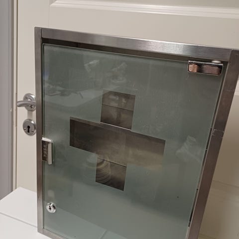 Selger pent brukt låsbart medisinskap med glassdør og med to nøkler for sikker oppbevaring