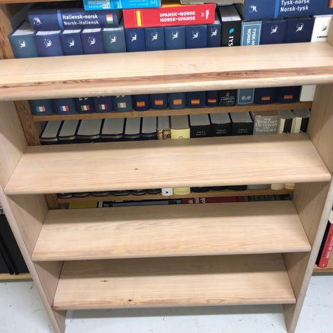 BBB-reol. Horsiontalt forlengelsessett. Ubehandlet overflate eller lutet overflate for 40 år siden, ikke godt å si. Eldste utgave med metallbeslag på kortsidene av hyllene. Består av fire hyller, ett metallskråstag, alle skruer og en kant/vange. Vangen står på høyre side av forlengelsessettet så denne passer på høyre side av den reolen du allerede har. Er en av dine nåværende vanger utsyrt med skuhull på begge sider kan du ved å stokke om på vangene (ja du må ta ut alt som står i din nåværende hylle for å få til dette ! :-) ) sette forlengelsessettet på venstre side av din nåværende reol. Se på alle bildene i annonsen. Kan settes ved siden av en 102 cm bred hylleseksjon eller en 82 cm bred hylleseseksjon. Ved forhåndsbtaling koster portoen med Posten 251 kroner. Med fiksferdigkjøp betaler du 319 kroner for frakten med Posten pluss Tryggbetalingsavgiften til finn på kroner 80.
