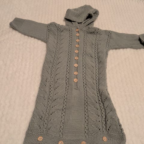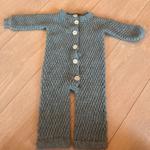 Hjemmestrikket bilstolpose/vognpose. Guttene våre reagerer dessverre på ull, så vi kan ikke bruke den.