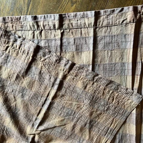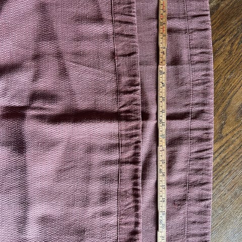Den andre lengden er med kant sydd på siden er er 130 bred (inkl kappe) Kappe på sida er ca 15 cm bred