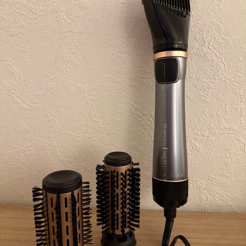 Remington Bigshot multistyler hårstyler i rosa etui. Sett med utskiftbare varmeverktøy for styling av hår. Håndtaket har betjeningsknapper og strømledning, og stylingdelene festes med klikkfeste. Inneholder blant annet bølgetang og krølltang med spiralformet føring. Leveres i matchende rosa veske for oppbevaring og transport.