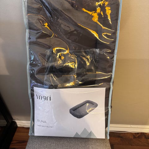 Yngri York setepute i svart. Seteputen er beregnet for bruk i barnevogn eller lignende sitteenhet for barn. Den gir ekstra polstring og komfort i setet, og har utsparinger til seler slik at den kan brukes sammen med vanlig sikkerhetssele.