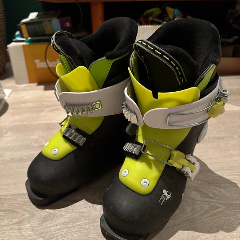 Lange alpinstøvler for barn i hvit og rosa farge. Støvlene har flere justerbare spenner i plast og metall for god tilpasning rundt fot og legg. Yttersålen er merket med sålelengde 268 mm, som brukes for innstilling av bindinger. Innvendig har støvlene polstret og isolert innerstøvel for komfort og støtte. Egner seg til vanlig alpint bruk for barn. Er usikker på hvilken sko størrelse dette utgår.