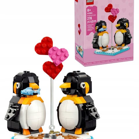 Dette høytidssettet inneholder to LEGO pingviner med bevegelige vinger, som står på en hjerteformet sokkel som symboliserer at pingviner holder sammen hele livet. Dette minibyggesettet inkluderer to pingvinfigurer som gir hverandre en stein og en fisk i romantisk gave. Gaven passer perfekt til jenter og gutter som liker kreative aktiviteter og søte LEGO dyresett. Settet består av 278 deler.