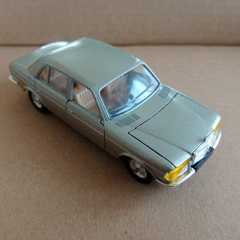 Mercedes Benz S124 Modellbil fra Cursor/KPZ. Skala 1:36. Ble solgt hos Mercedes forhandlere samtidig som disse kom som ordentlige biler. Ganske fin og hel men støvete, stjerna på panseret mangler, esken likeså. Hentes i Levanger eller sendes for Kr 76.- Henvendelser via Finn. Forskuddsbetaling via Vipps.