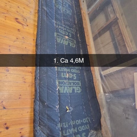 Rester av rull (mesteparten igjen, brukte bare en liten del av den ene rullen, 2 pk), 70 x 570 x 6500 mm.