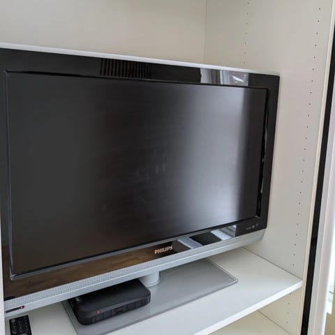 Samsung TV 32tommer flatskjerm. TV-en har tilkoblingsmuligheter som blant annet HDMI og komponent/kompositt-innganger, samt antenneinngang. Egnet for bruk som vanlig TV eller som skjerm til ulike eksterne enheter som dekoder, spillkonsoll eller mediespiller