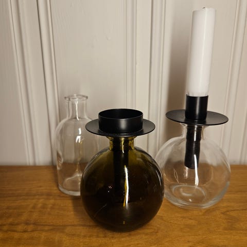 Se bilder for informasjon og pris. Store svarte vasen har en skade (se bilde). Kan evt selge alt samlet for 150kr