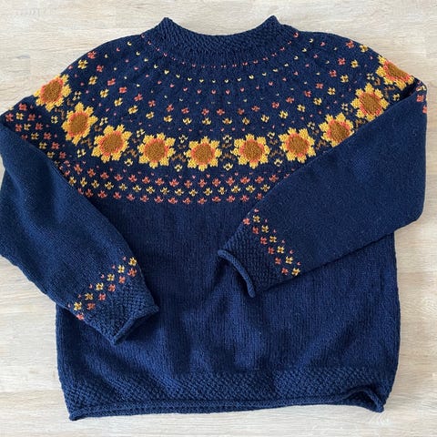 Ny og håndstrikket I fargene dyp skog grønn og lys grå 100% alpakka fra Sandnes garn.