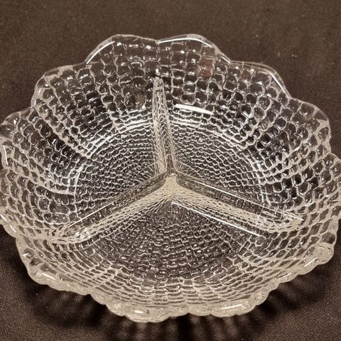 Fransk vintage serveringsfat i glass – delt snacks/skalldyrfat
