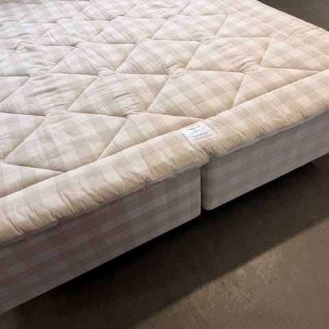 Hästens seng med klassisk blå og hvit rutete trekk. Sengen består av to underdeler med overmadrass som danner en dobbeltseng. Typisk bruk er som fast seng på soverom. Designet kjennetegnes av det karakteristiske rutemønsteret og ben i metall. Passer for personer som ønsker en hel liggeflate med delt underdel. Nærmere spesifikasjoner som mål, fasthetsgrad og materialer fremgår vanligvis av merkelapp eller original dokumentasjon fra produsent.