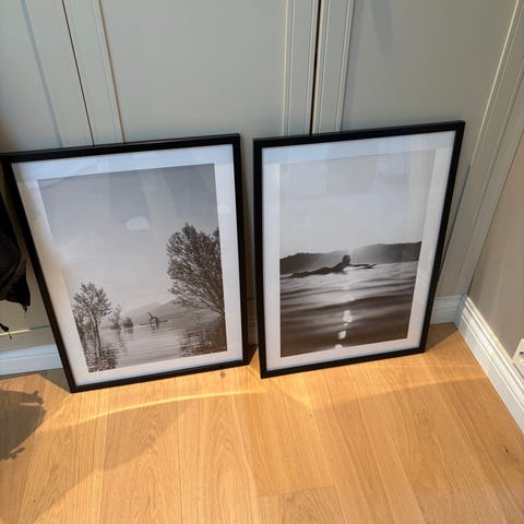 Selger 2 stk bilder inkludert rammene. 50x70 cm (52x72cm fra ytre ramme). Selges for 200kr stk. begge bildene og rammene er fra desenio for et par år siden.