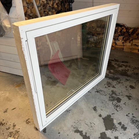 Vindusvindu i hvit utførelse. Vinduet er montert i karm/ramme og har sidehengslet åpning med hengsler på den ene siden. Passer til montering i yttervegg eller garasje der det er behov for et vindu med åpningsfunksjon. Materiale og eksakte mål er ikke oppgitt og bør kontrolleres før montering.