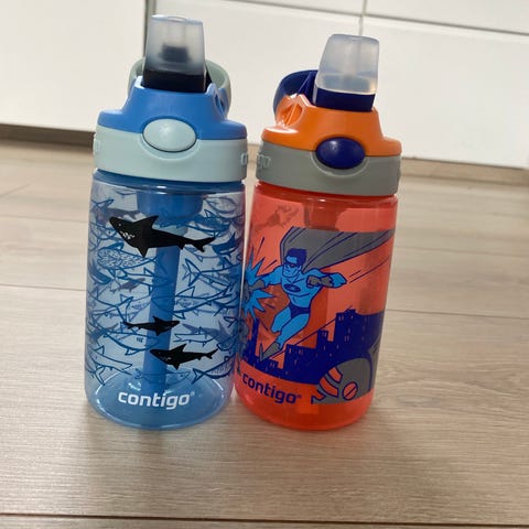 Contigo drikkeflaske til barn selges. 3 stk lite brukt og 1 stk brukt (figuerene på flaska er omtrent borte)