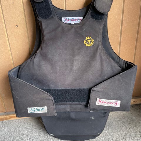 Horka sikkerhetsvest til ridning for barn i mørkeblå farge. Vesten har beskyttende paneler foran, bak og i sidene, samt justerbare skulderstropper og bredt belte med borrelås for tilpasning rundt livet. Designet for å gi støtdempende beskyttelse ved ridning og annen hestesport. Yttermaterialet er i tekstil med fleksible innleggsplater som gir bevegelsesfrihet samtidig som overkroppen skjermes. Passer til bruk i stall og ved trening eller turer til hest.