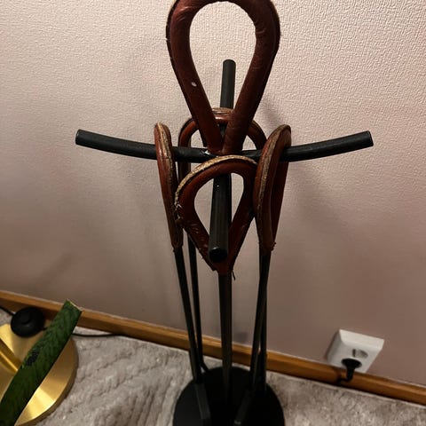 Selger pent brukt peissett og vedstativ grunnet flytting.