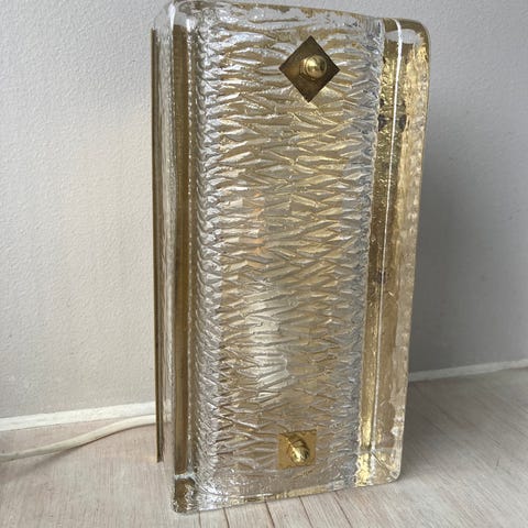Selger en nydelig bordlampe i kunstglass fra Høvik Verk. Eldre modell i flott stand. Lampen i glass er 20 cm høy - høyden på fatningen kommer i tillegg.