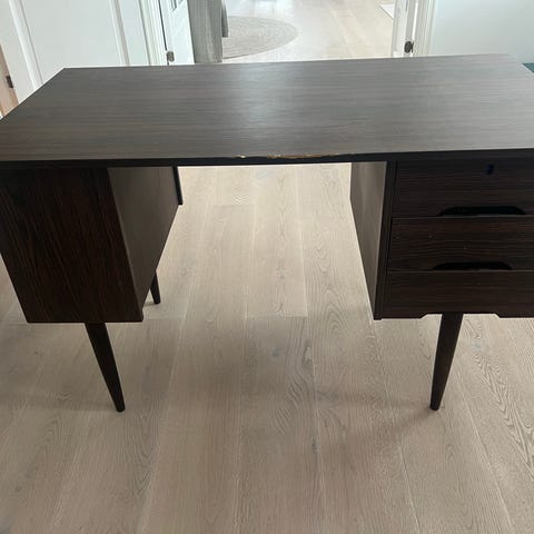 Gammelt håndlaget skrivebord. Det ene skapdøra går ikke helt igjen, men kan sikkert fikses. Må hentes.