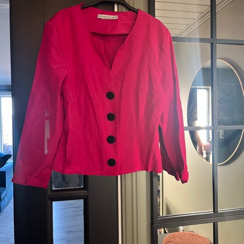 H&M Josefine HJ paljettblazer for dame i størrelse 40. Blazeren er helforet og dekket med sølvfargede paljetter. Den har klassisk jakkeslag, knappelukking foran og lange ermer. Egner seg som ytterlag over topp eller kjole ved anledninger der man ønsker et mer markert uttrykk.