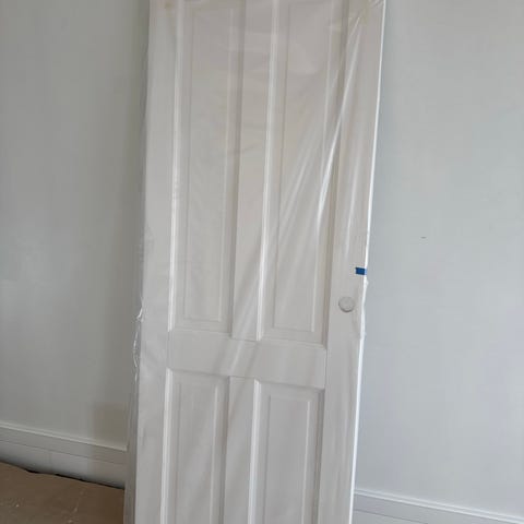 Innerdører i hvit utførelse med standard dørhåndtak og låskasse. Passer som romdører i bolig, for eksempel mellom soverom, gang, stue, kjøkken og bad/toalett. Glatt dørblad med enkel, moderne stil. Leveres med monterte håndtak og hengsler slik de fremstår på bildene.