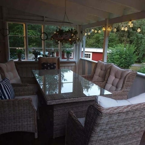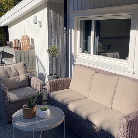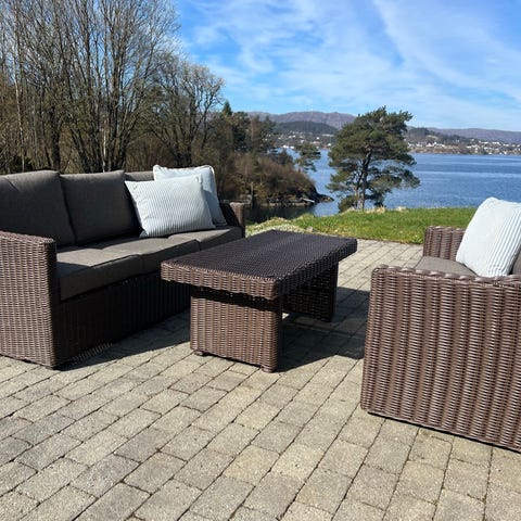 Hjørnesofa utemøbler rotting med bord og puter